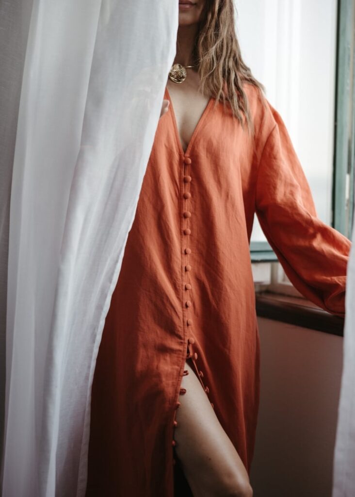 Glavnu riječ vode dvije siluete koje će obilježiti sezonu – voluminozna maxi haljina u boji cigle i čokolade te mini haljina na vezanje s dubokim dekolteom, gotovo skulpturalna. To nisu komadi koji će vam skupljati prašinu – to su haljine koje se nose, u kojima se pleše, šeta, živi.