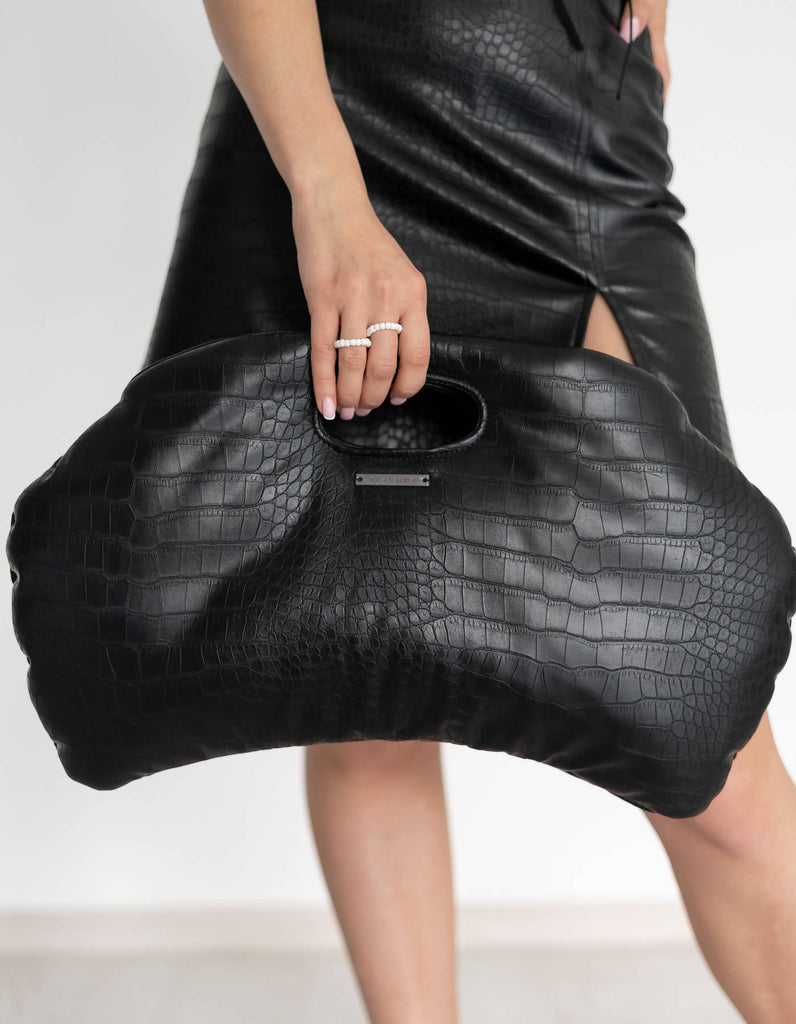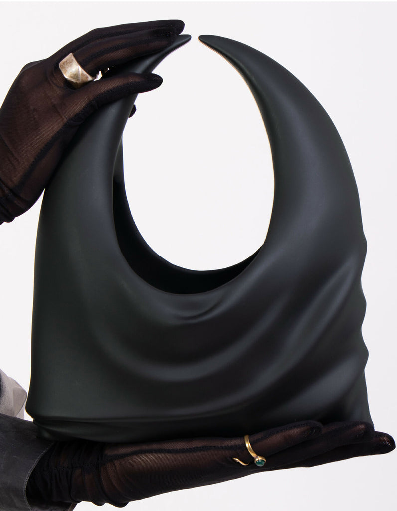 Kolekcija obuhvaća raznoliki niz crnih torbi, svaka pažljivo izrađena kako bi istovremeno odražavala oblik i funkciju. Od čistih linija do kompleksnih detalja 3D ispisanih dizajna, svaki komad priča priču o kreativnosti i zanatskoj vještini.