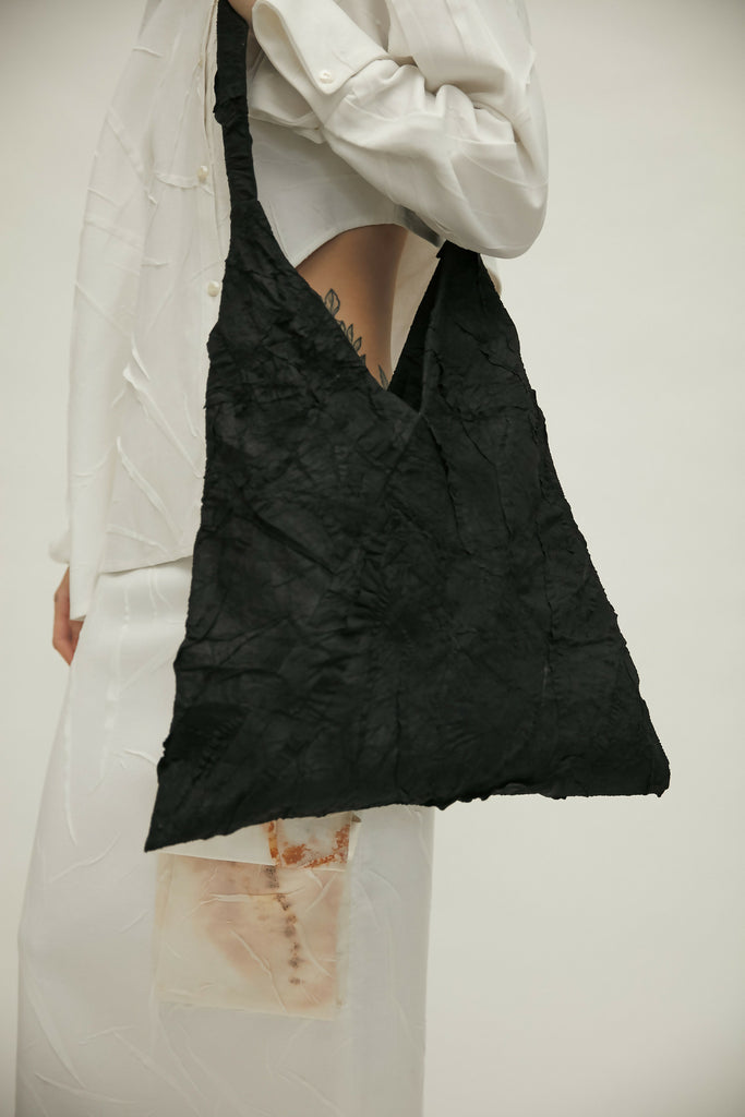 Jenn Lee iz Tajvana uvodi šarm s Paper Shoulder Bag u elegantnoj crnoj boji.