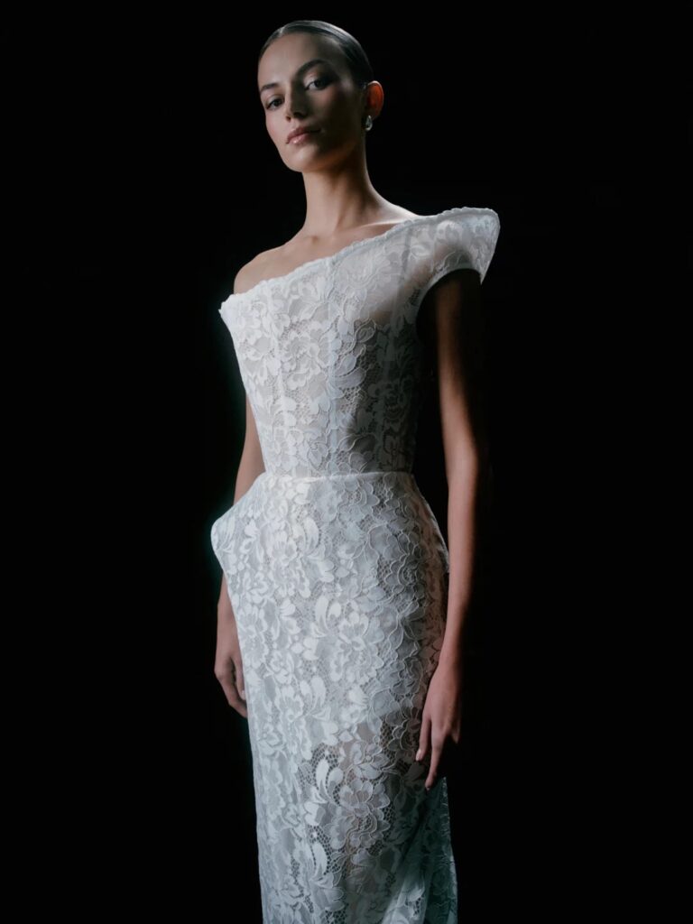 Materijali imaju jednako snažan glas kao i sama konstrukcija. Čipka, reljefni žakard, til i glatke mat površine koriste se promišljeno, bez dekorativnog pretjerivanja. Ručno oblikovani detalji nisu samo ukras nego arhitektonski element koji naglašava volumen, definira liniju i uvodi dinamiku. Sve djeluje podređeno ideji čiste elegancije: ljepota proizlazi iz ravnoteže, a ne iz akumulacije detalja. U tome se vidi jasna estetika eNVy rooma, estetika koja nije oslonjena na trendove, nego na osjećaj za proporciju i lakoću.