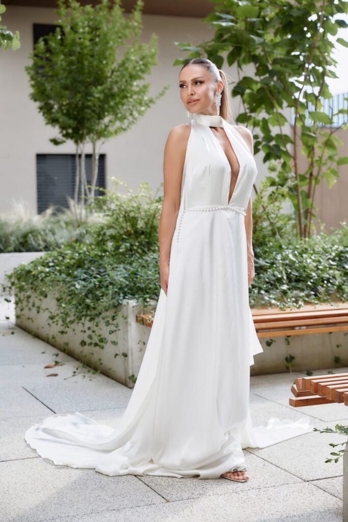 Ovoga puta tradicija se sudara s modernom vizijom: klasična bijela haljina dobila je novo lice kroz nježne tonove pudera vanilije, skulpturalne krojeve i raskošne materijale poput svile i brokata. Prozračne tkanine, voluminozni detalji i ručni rad stapaju se u vjenčanice koje istovremeno odišu profinjenošću i slobodom.