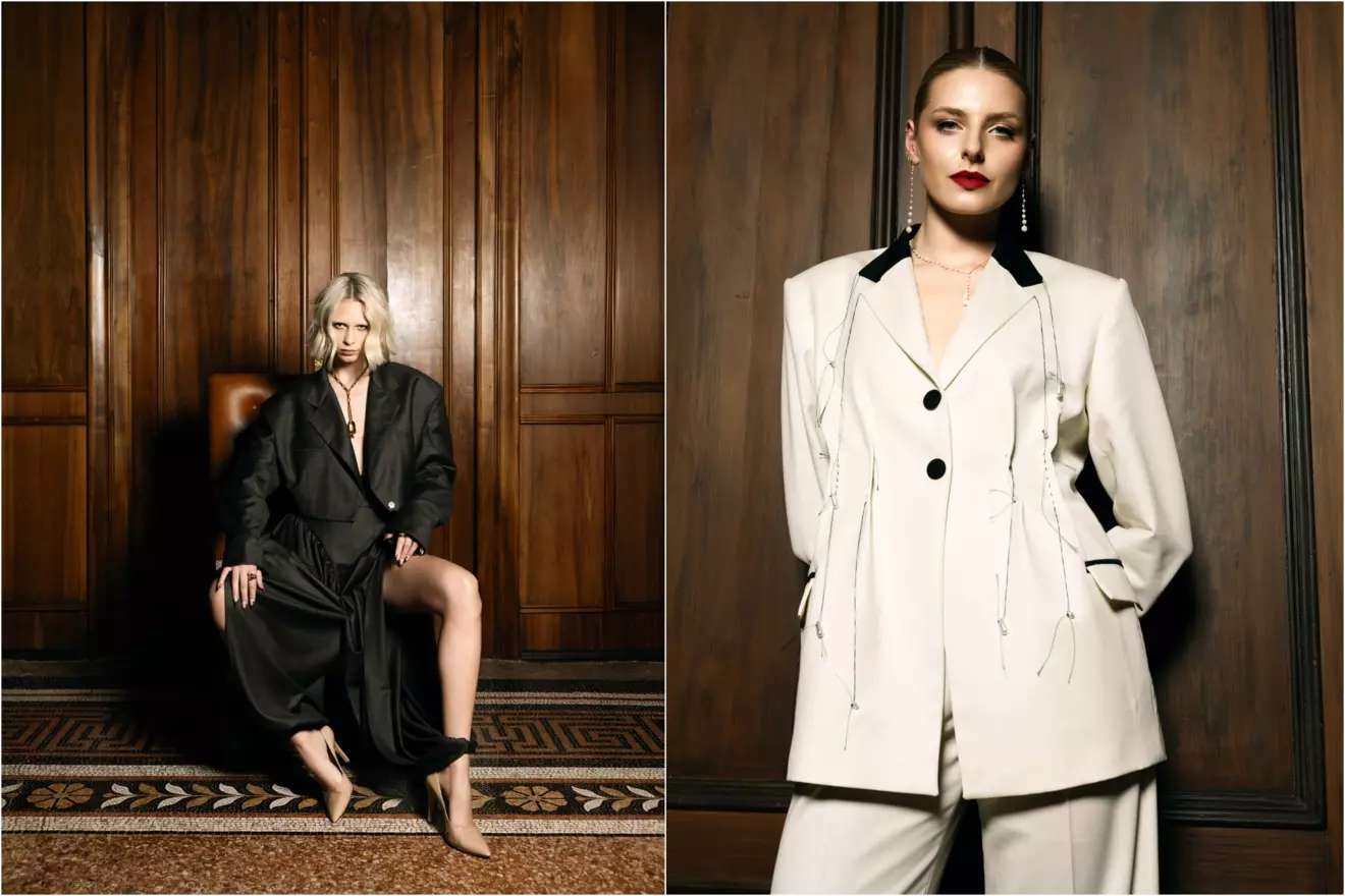 U središtu kolekcije su odijela izrađena od Loro Piana tkanina. Upravo materijal ovdje nosi velik dio priče. On određuje pad, strukturu i osjećaj na tijelu, a Lana Puljić koristi ga na način koji ne briše osobnost osobe koja nosi odijelo. Siluete su čiste, precizne i dovoljno snažne da funkcioniraju i bez suvišnih detalja.