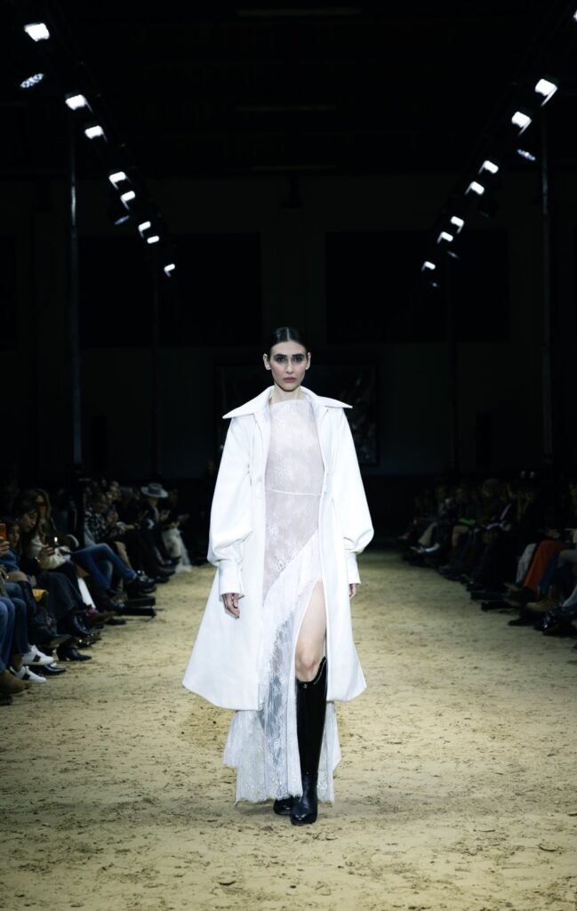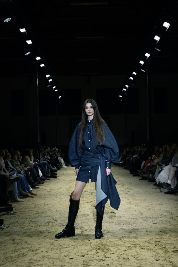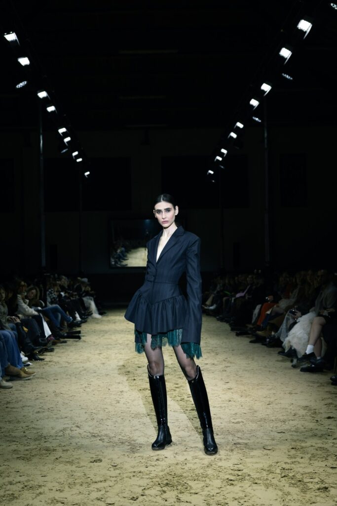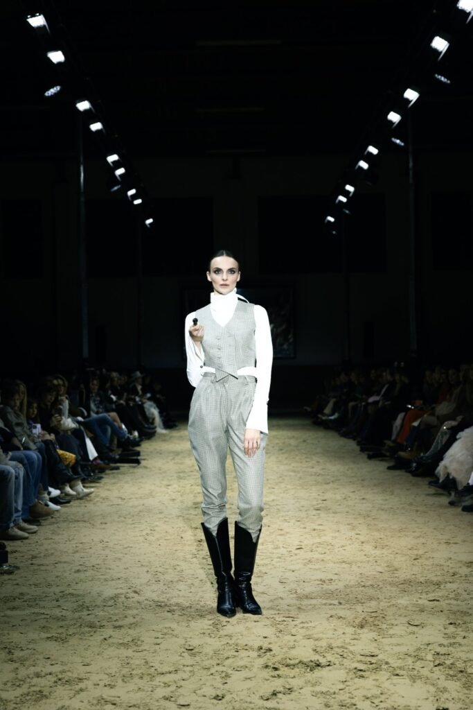 Svilene večernje haljine, fini vuneni štofovi, čipka i pamuk stapaju se u liniju koja slaví snagu žene, ali i njezinu potrebu za slobodom, komforom i autentičnošću. U pojedinim lookovima pojavljuju se detalji inspirirani jahanjem – visoke kožne čizme izrađene po mjeri, rukavice, elementi zapadnjačke ikonografije – no sve je prezentirano odmjereno i sofisticirano.