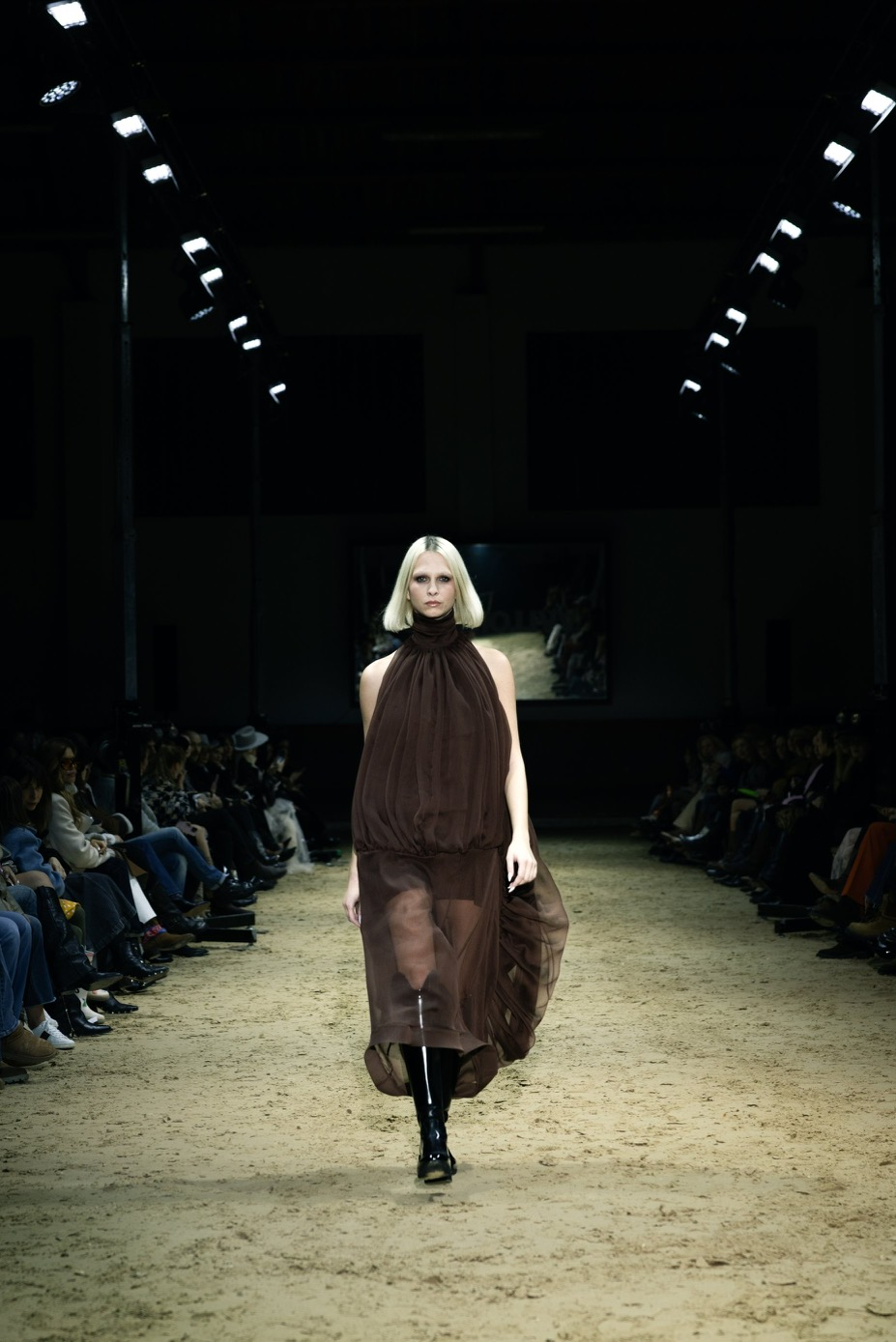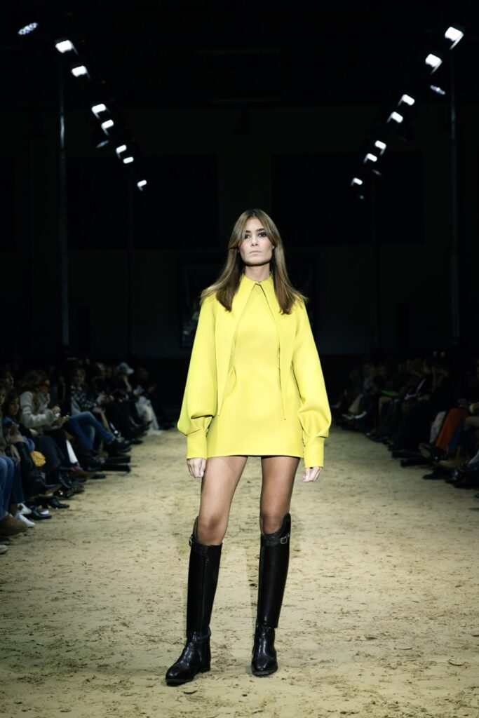 Silhouette su čiste i definirane, naglašene konstrukcijski savršenim odijelima i kaputima koji oblikuju figuru bez težine. Uz njih se smjenjuju meki, fluidni materijali koji unose pokret i lakoću, stvarajući idealan kontrast strogoći jahačkog svijeta.