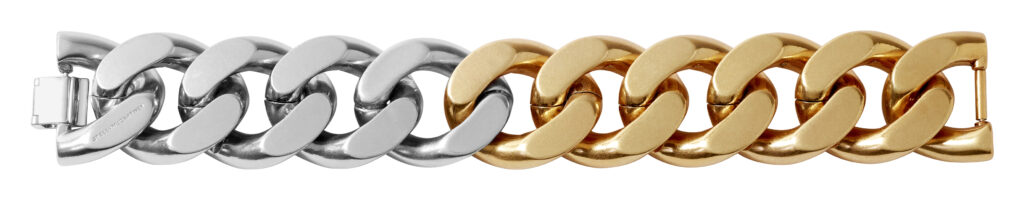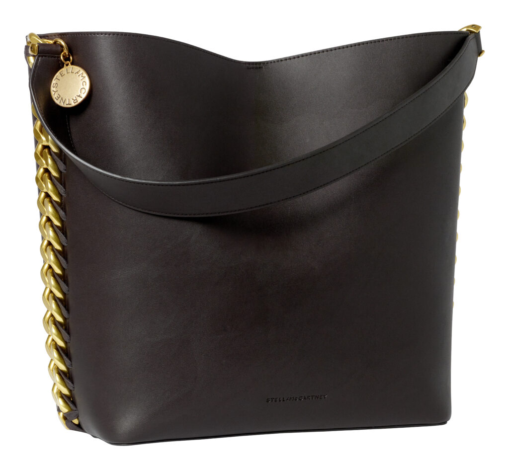 Dodaci ovdje nisu tek dodatak. Torbe imaju važnu ulogu i dolaze u šest varijanti, od manjih modela za rame s istaknutim logotipom do velikih tote torbi i klasične torbe u čokoladnoj nijansi s remenom ukrašenim lancem. Falabella motiv nastavlja se i kroz nakit te obuću. Ogrlice i naušnice izrađene su od recikliranog metala u miješanim tonovima, a loaferice nose detalj lanca na prednjem dijelu. Sve djeluje povezano, bez dojma da je išta ubačeno samo zato da popuni kolekciju.