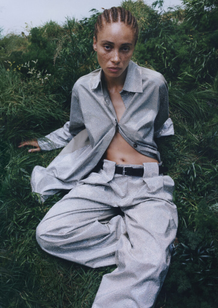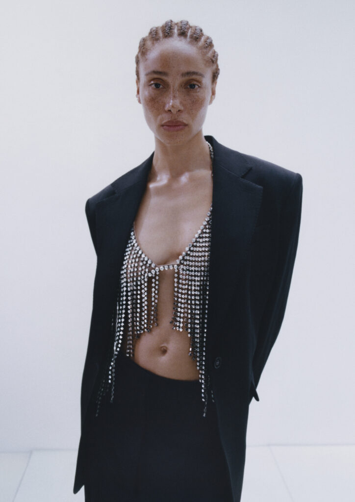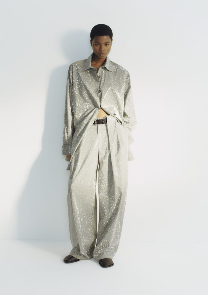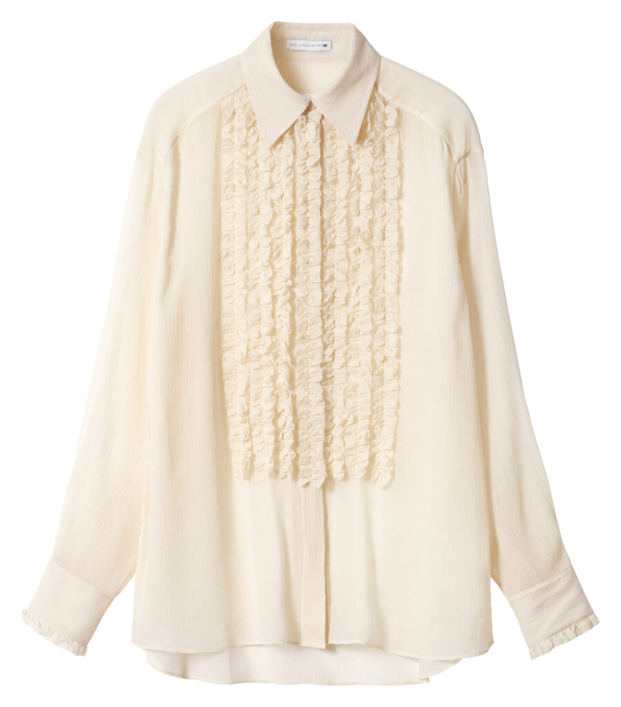 Nova kolekcija zato ima zanimljiv zadatak. Ne vraća se kako bi kopirala prošlost, nego kako bi je ponovno pročitala. U njoj se susreću komadi koji i danas djeluju tipično Stella McCartney, poput predimenzioniranih košulja, dugih balonera i precizno krojenih odijela, s motivima i detaljima koji prizivaju ranije faze njezina rada. Tu su ukrašeni printovi, topovi sa sloganima, sjaj, malo humora i onaj poznati osjećaj da odjeća ne mora birati između ženstvenosti, stava i razigranosti.