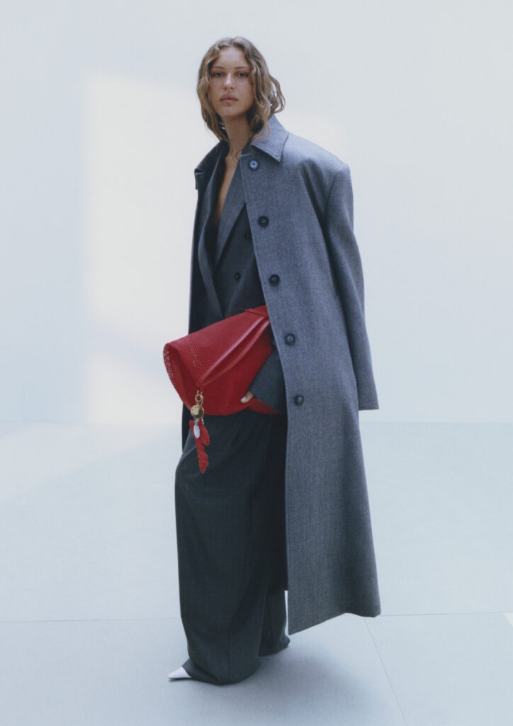 Važan sloj cijele priče ostaje i odnos prema materijalima. Kolekcija daje prednost recikliranim sastavima, organskom pamuku, vuni s RWS certifikatom te inovativnim rješenjima za premazane materijale, uključujući industrijski kukuruz i reciklirano biljno ulje. Kod Stelle McCartney to nije nova tema ni dekorativna poruka. To je dio identiteta koji se ovdje samo nastavlja u formatu dostupnijem široj publici.