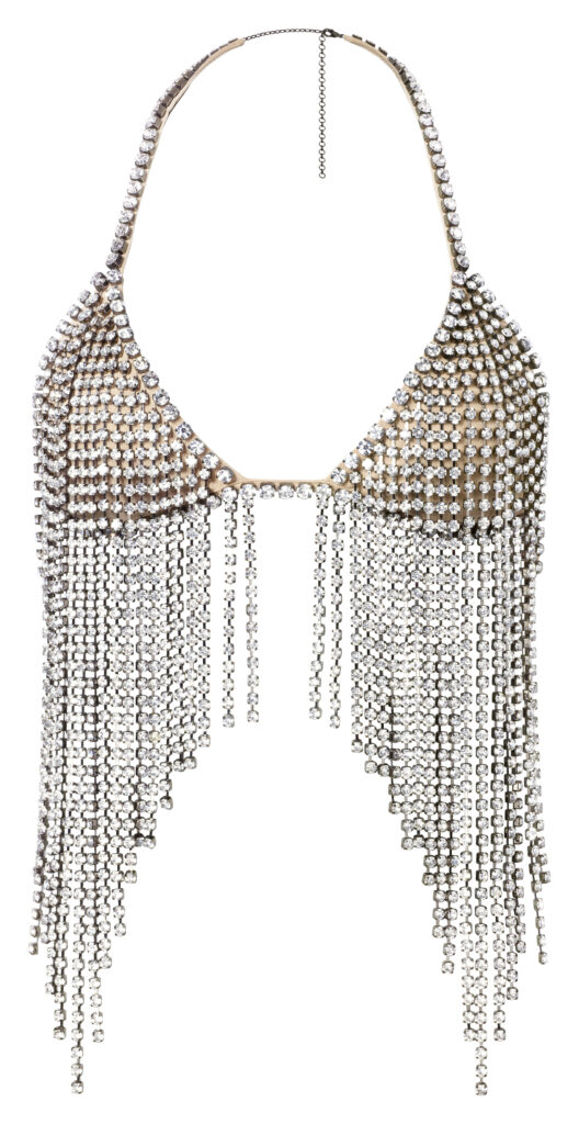 Uz to dolaze party modeli sa sjajem, denim, odvojivi komadi te mrežaste haljine i topovi u arhivskom cherry printu. Jedan od komada koji će sigurno probuditi sjećanja je i bijela mini majica ukrašena zakovicama i natpisom Rock Royalty. Taj detalj dobro sažima cijelu kolekciju. Nije previše ozbiljna, ali zna točno što radi.