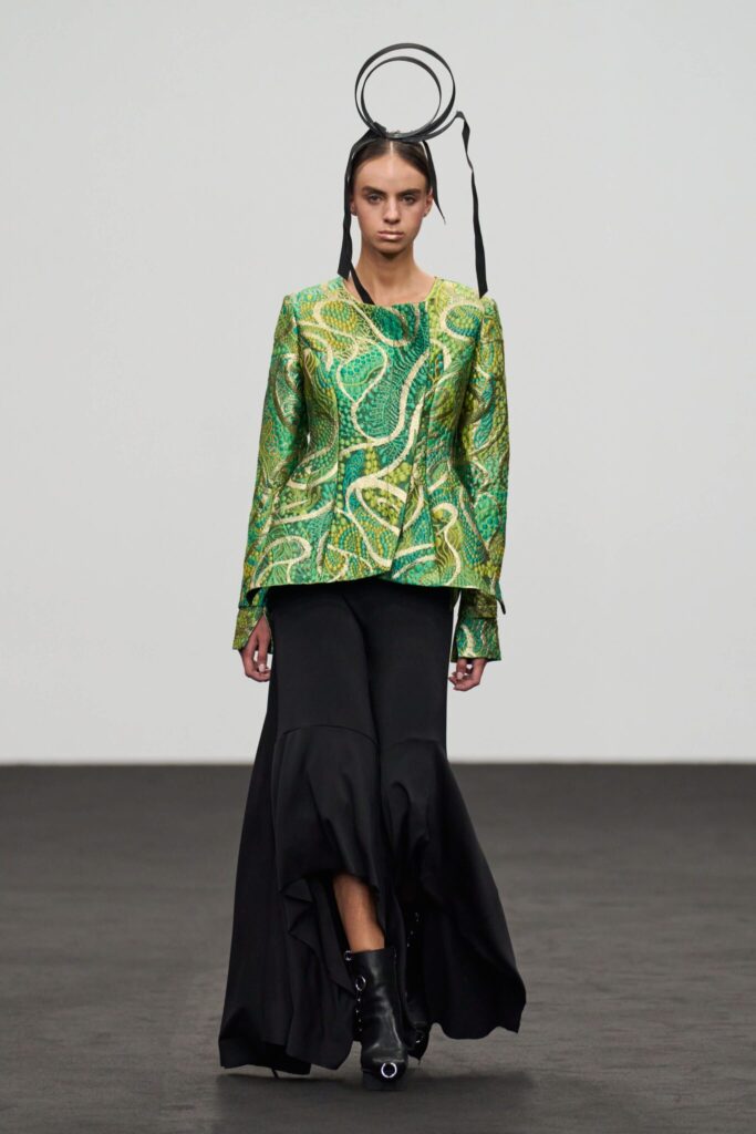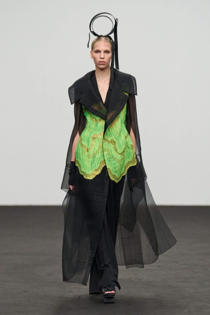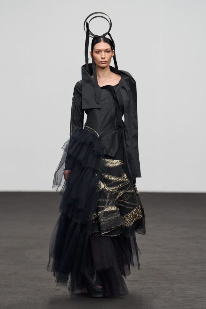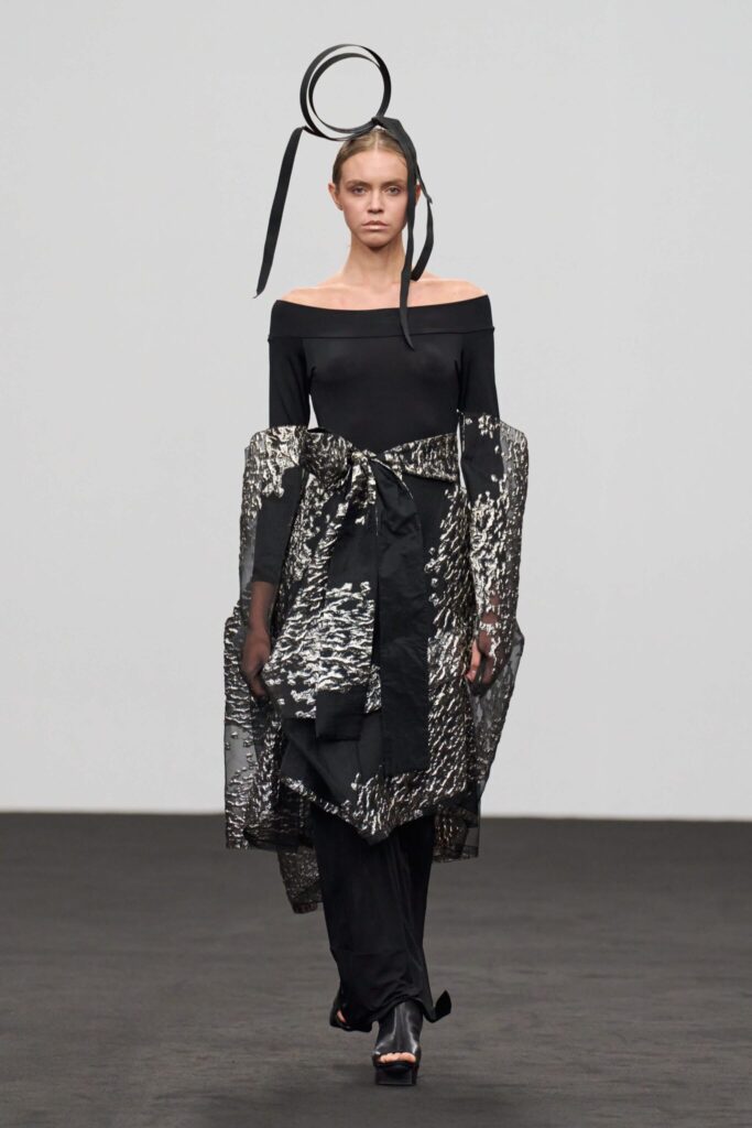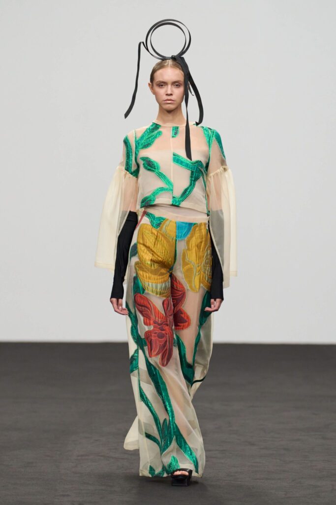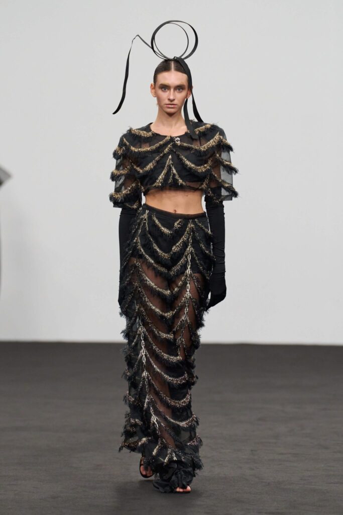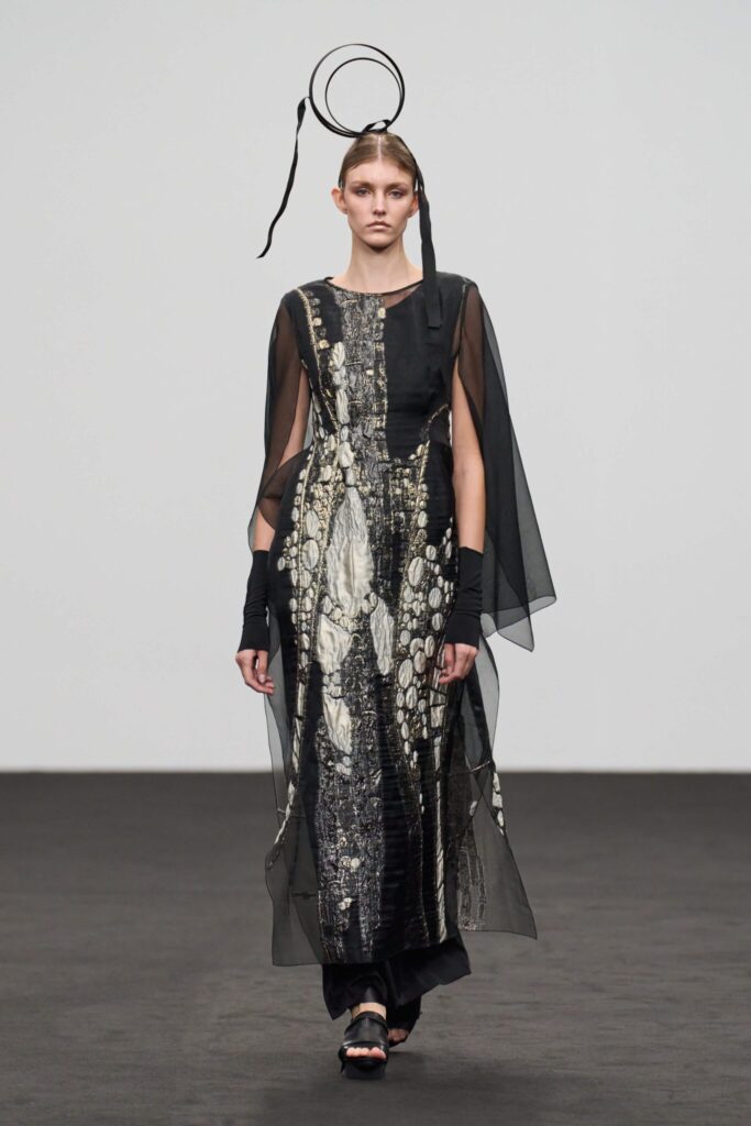 Kolekcija donosi potpuno unikatne materijale i konstrukcije, izrađene isključivo za ovu liniju. Nježni kontrasti luksuznih tkanina i naglašene siluete podsjećaju na skulpturalne forme, dok su detalji izvedeni s iznimnom preciznošću krojačkog umijeća. Publika je mogla vidjeti spoj discipline i spontanosti – couture koji ne pokušava sakriti proces nastanka, već ga slavi kroz vidljive „zlatne linije“ kroja i detalja.