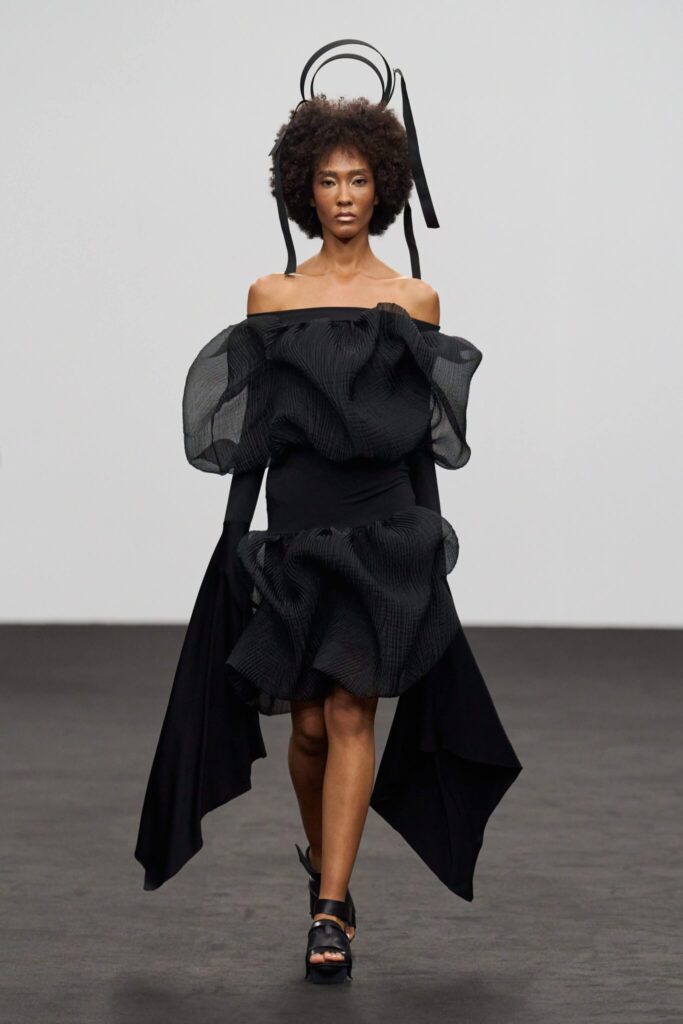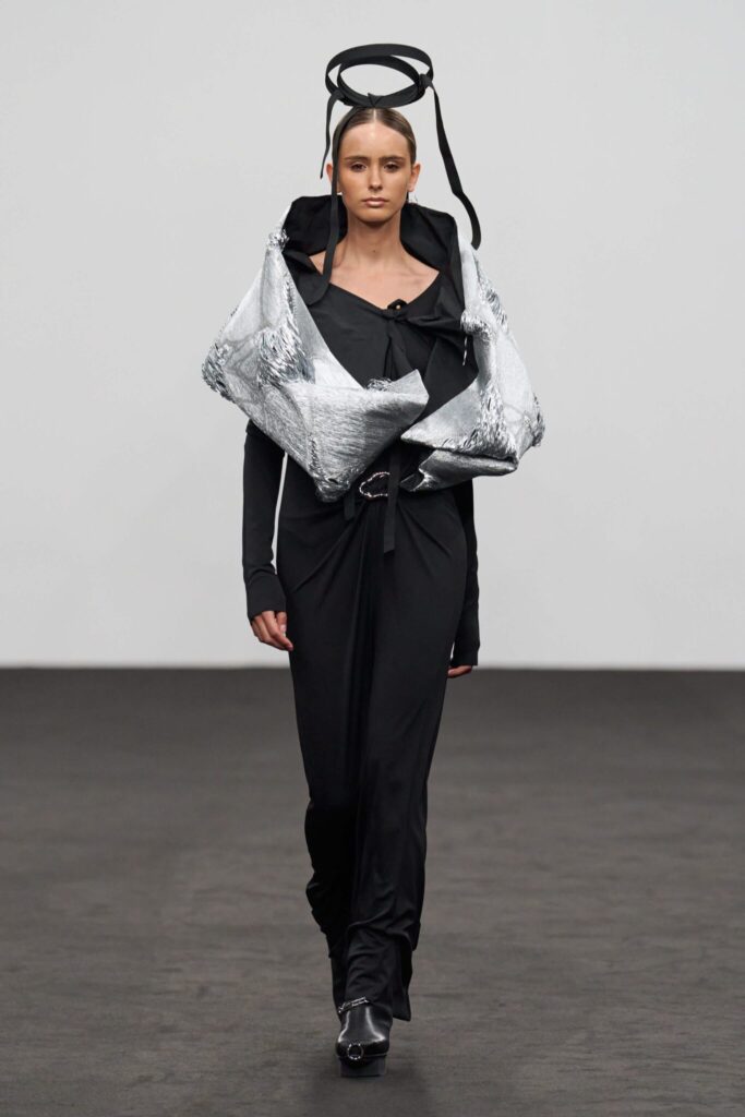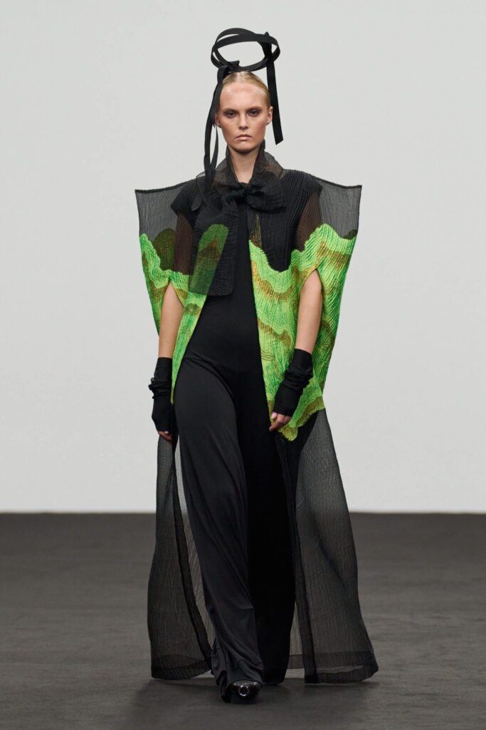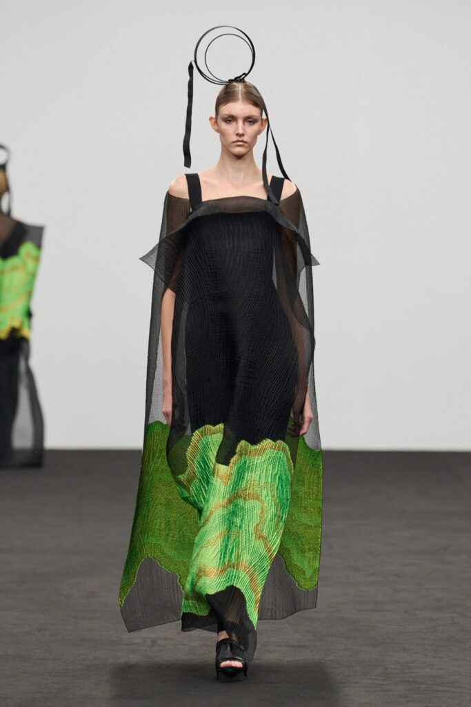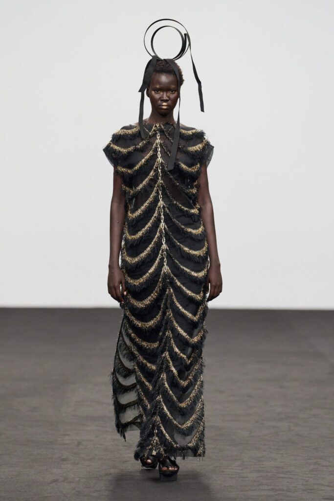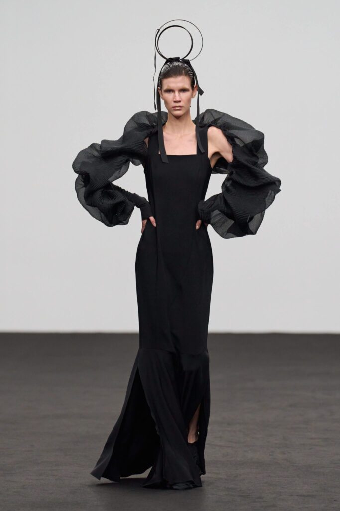 Kolekcija donosi potpuno unikatne materijale i konstrukcije, izrađene isključivo za ovu liniju. Nježni kontrasti luksuznih tkanina i naglašene siluete podsjećaju na skulpturalne forme, dok su detalji izvedeni s iznimnom preciznošću krojačkog umijeća. Publika je mogla vidjeti spoj discipline i spontanosti – couture koji ne pokušava sakriti proces nastanka, već ga slavi kroz vidljive „zlatne linije“ kroja i detalja.